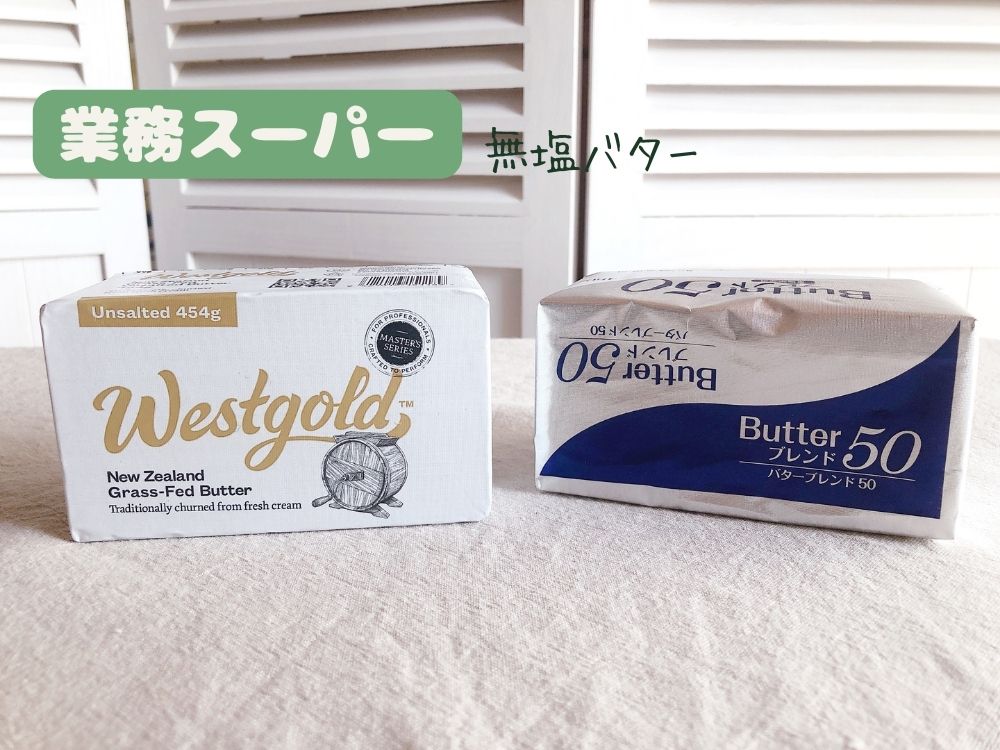 業スーで(左)のグラスフェッドバターをよく買ってたんですが、近頃はすごく値上がりしてるので今回(右)を購入。