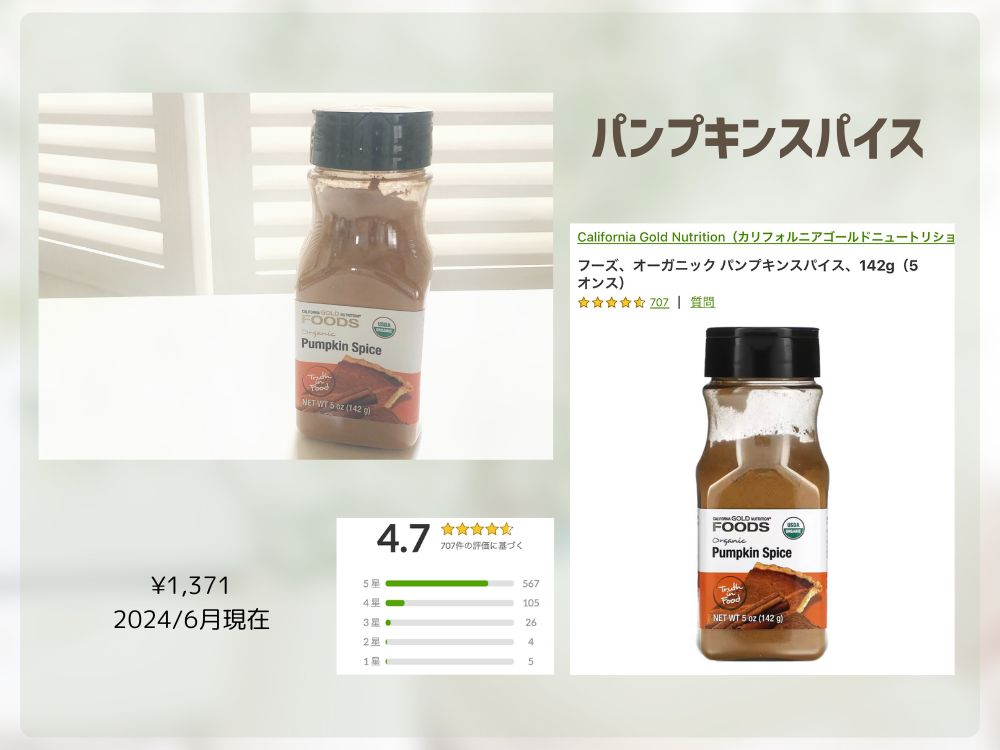 - シナモン、ショウガ、ナツメグ、クローブ使用