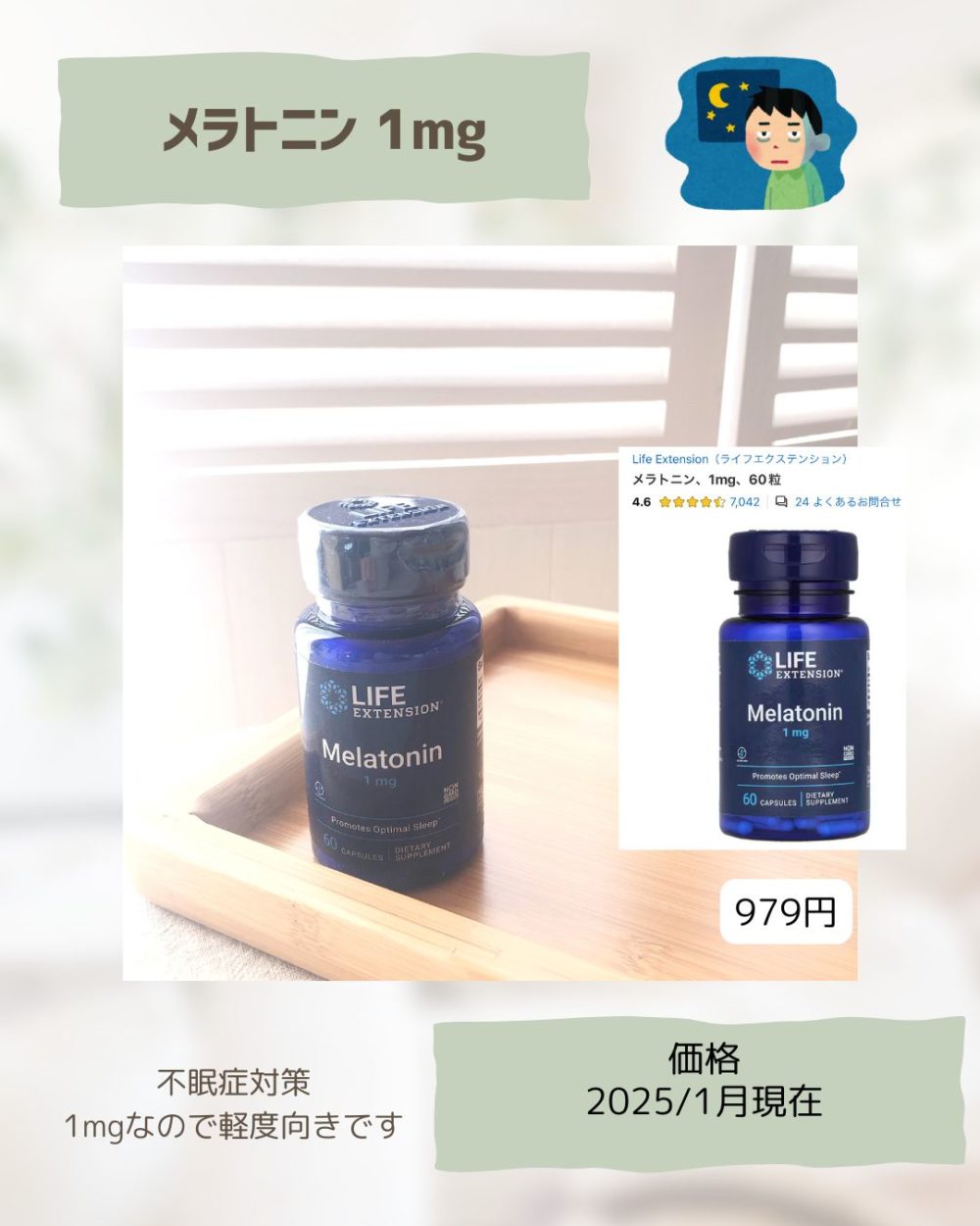 - メラトニン1mg