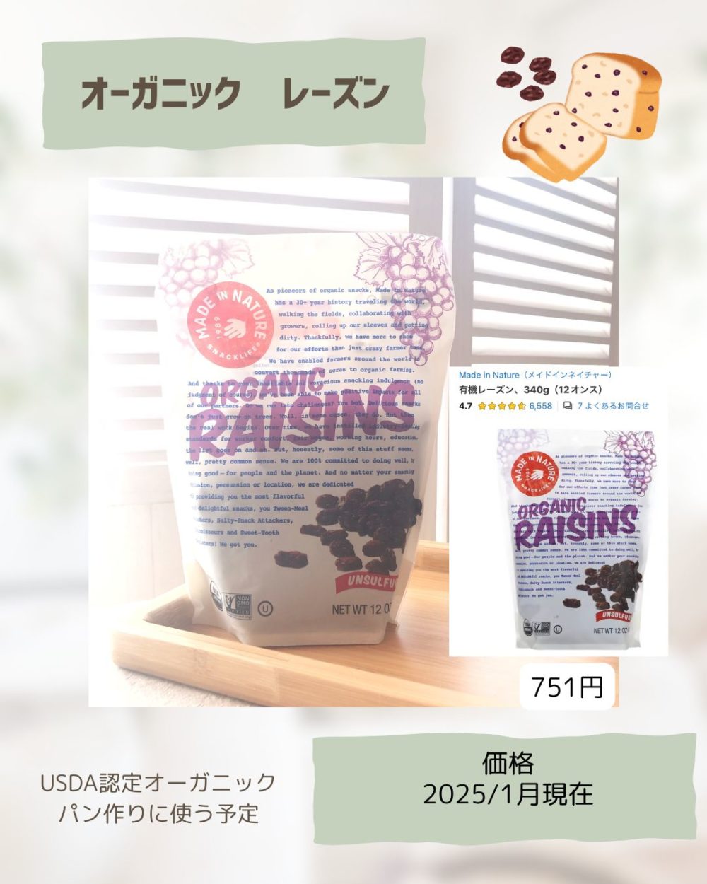 レーズンバターも作りたいけど、パン焼きの材料に使おうと思い購入しました。