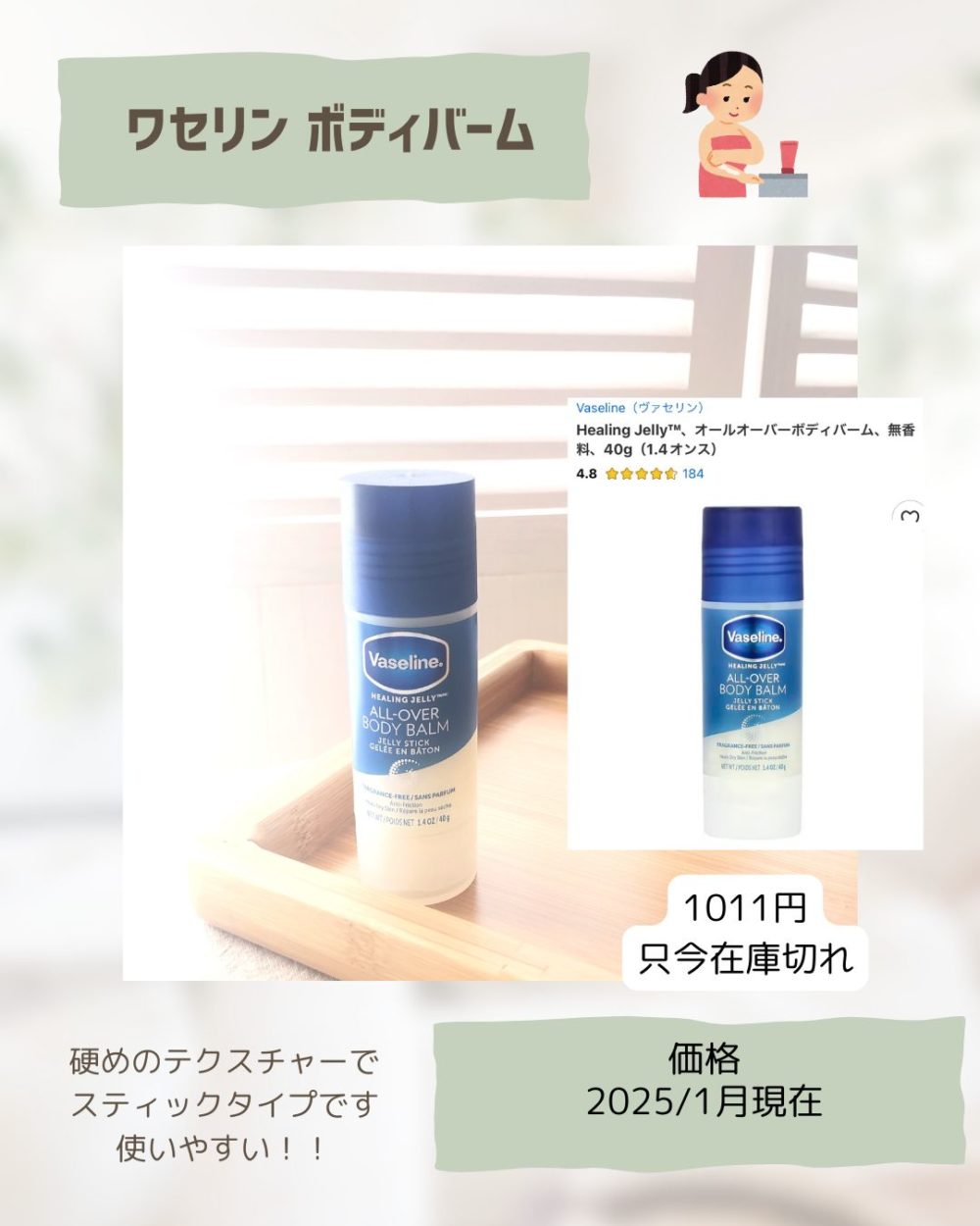 ワセリンは容器タイプは何度も購入してますが、スティックは初めて見たので買って見ました。