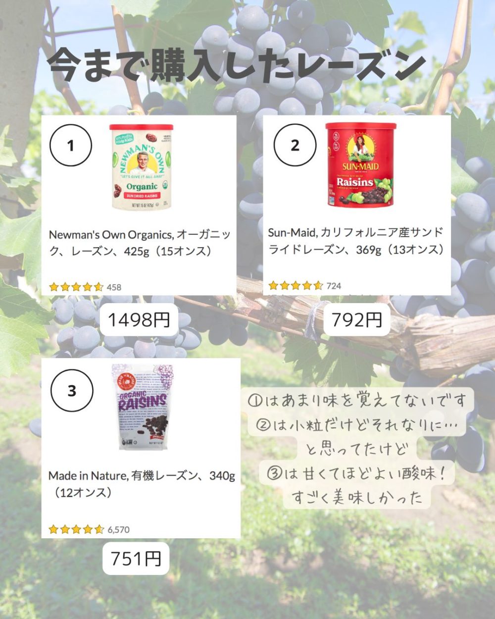 今までiHerbで購入したレーズンは↓の3点です。