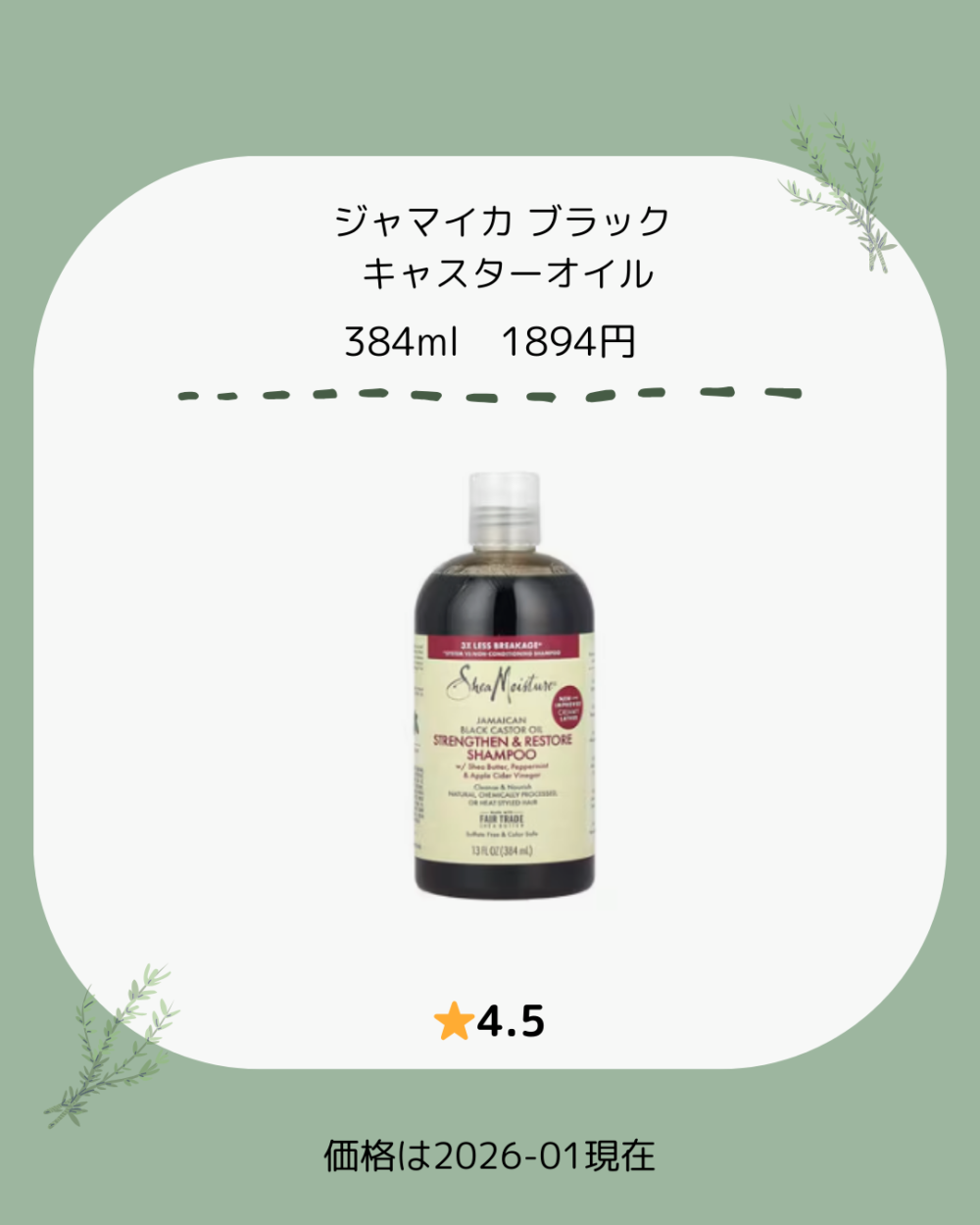 ①ジャマイカ ブラック キャスターオイル シャンプーを使ってみた感想
