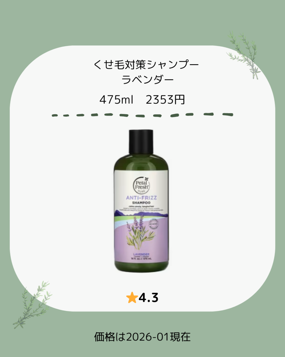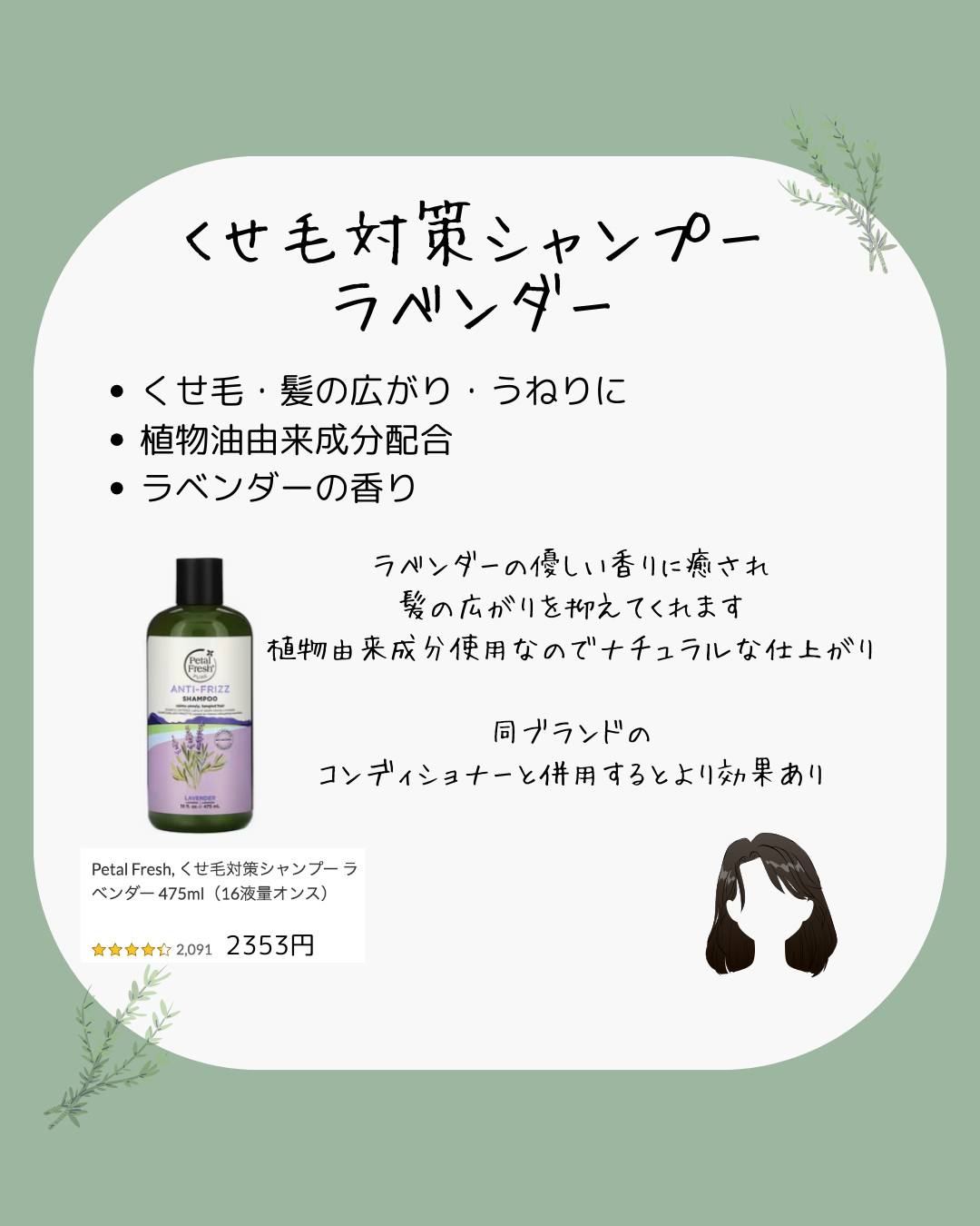 • 軽さ・まとまり・毎日使い → くせ毛対策シャンプー/ラベンダー