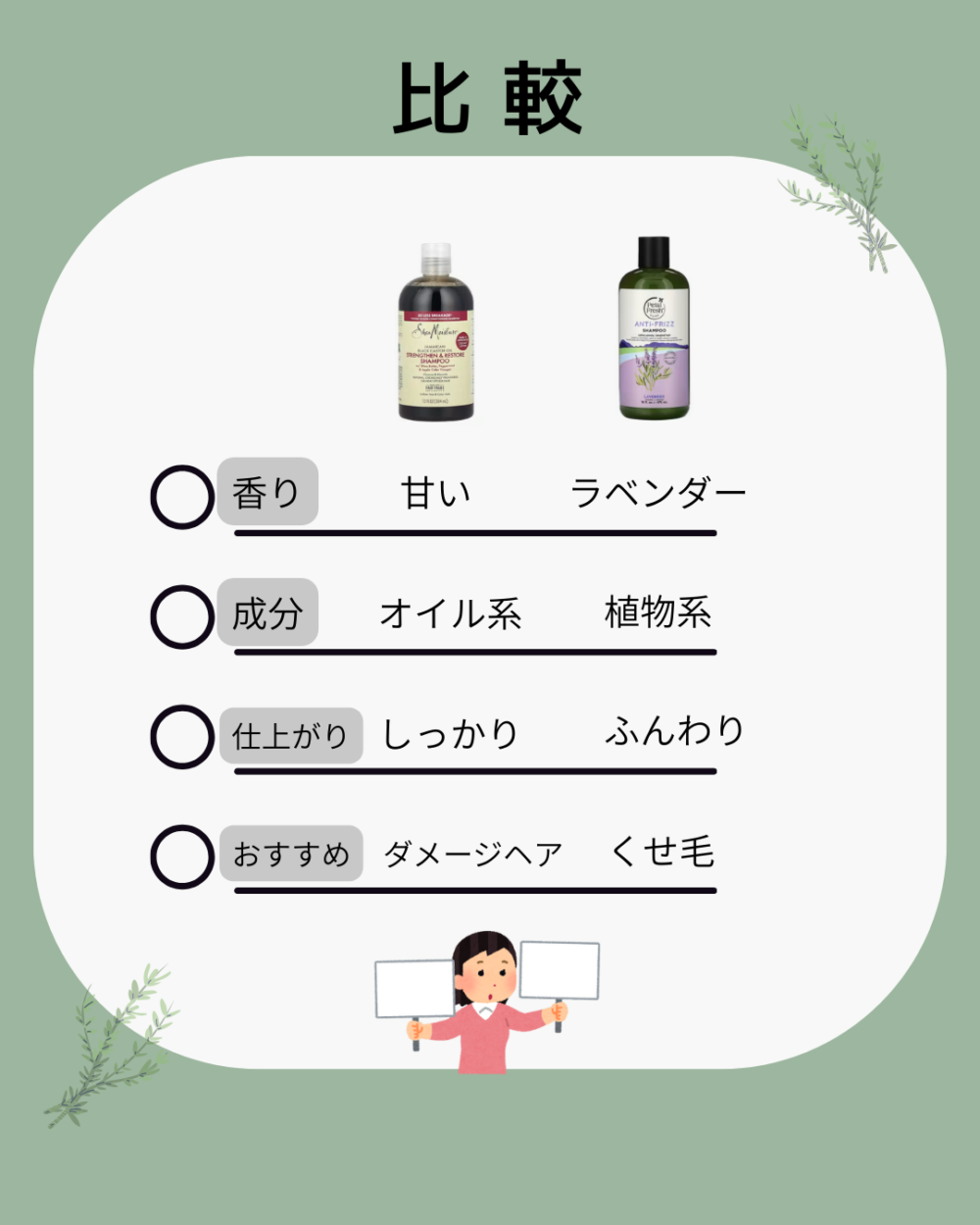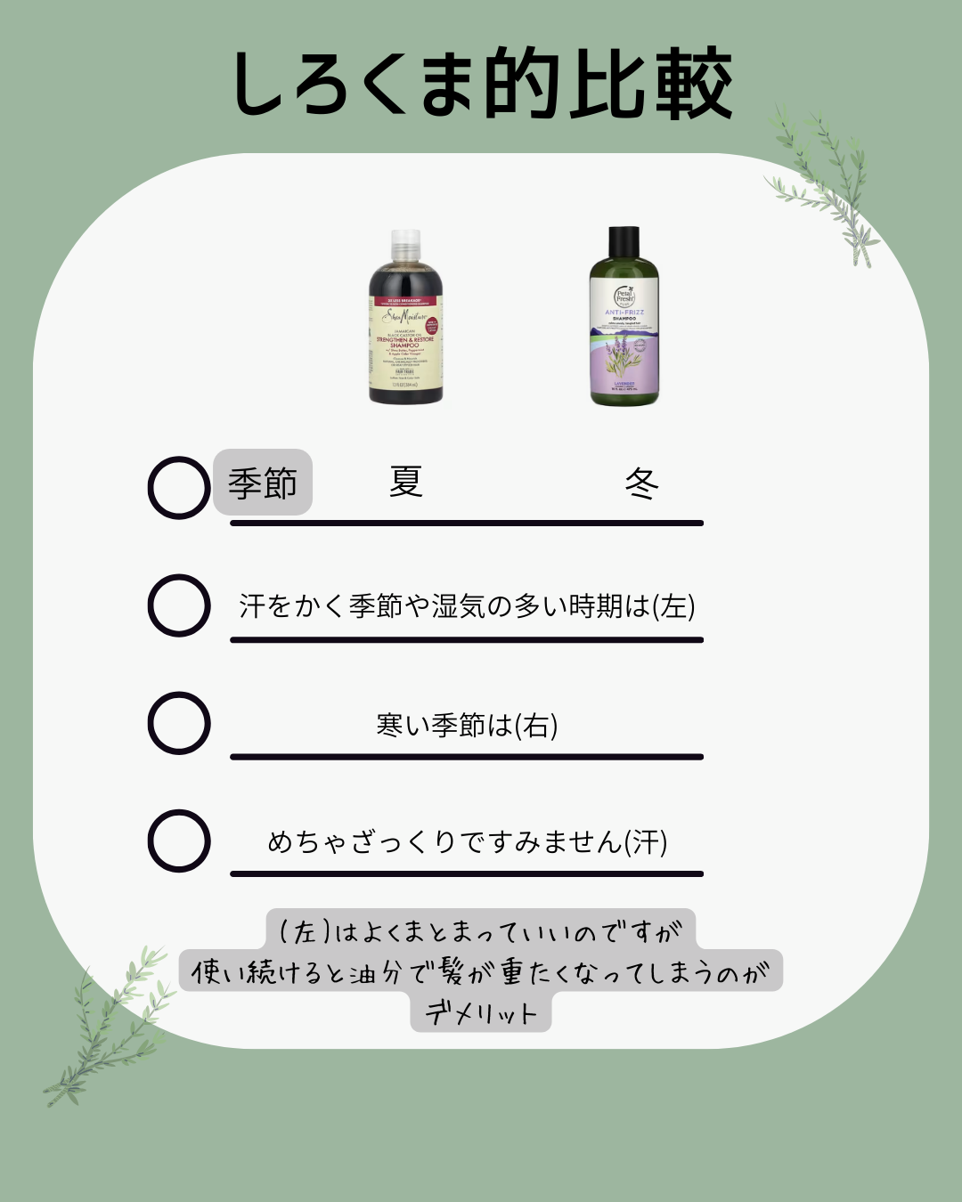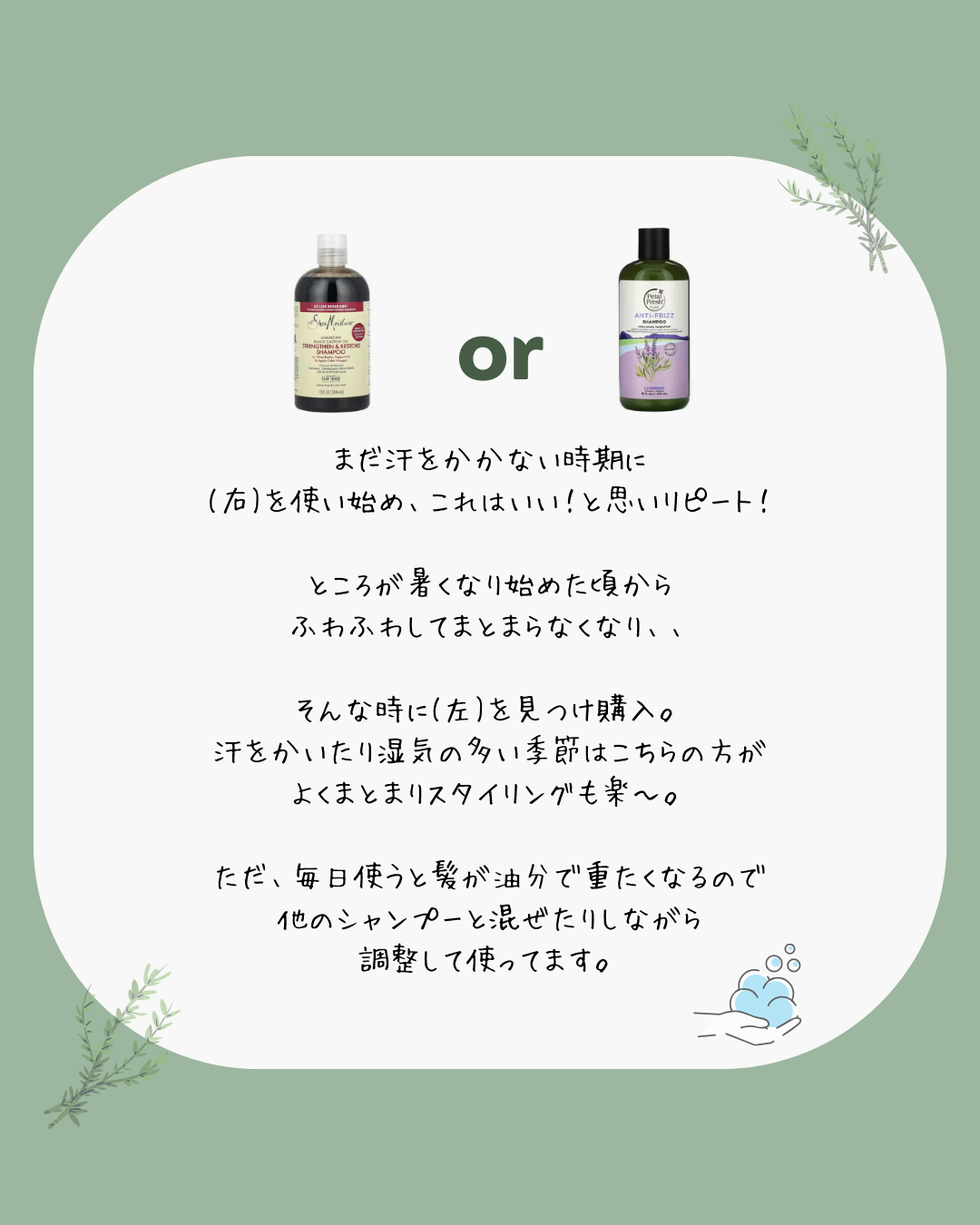 同じ“くせ毛向け”でも「ダメージケア重視」「軽いくせ毛」かで選ぶといいかなぁ〜。