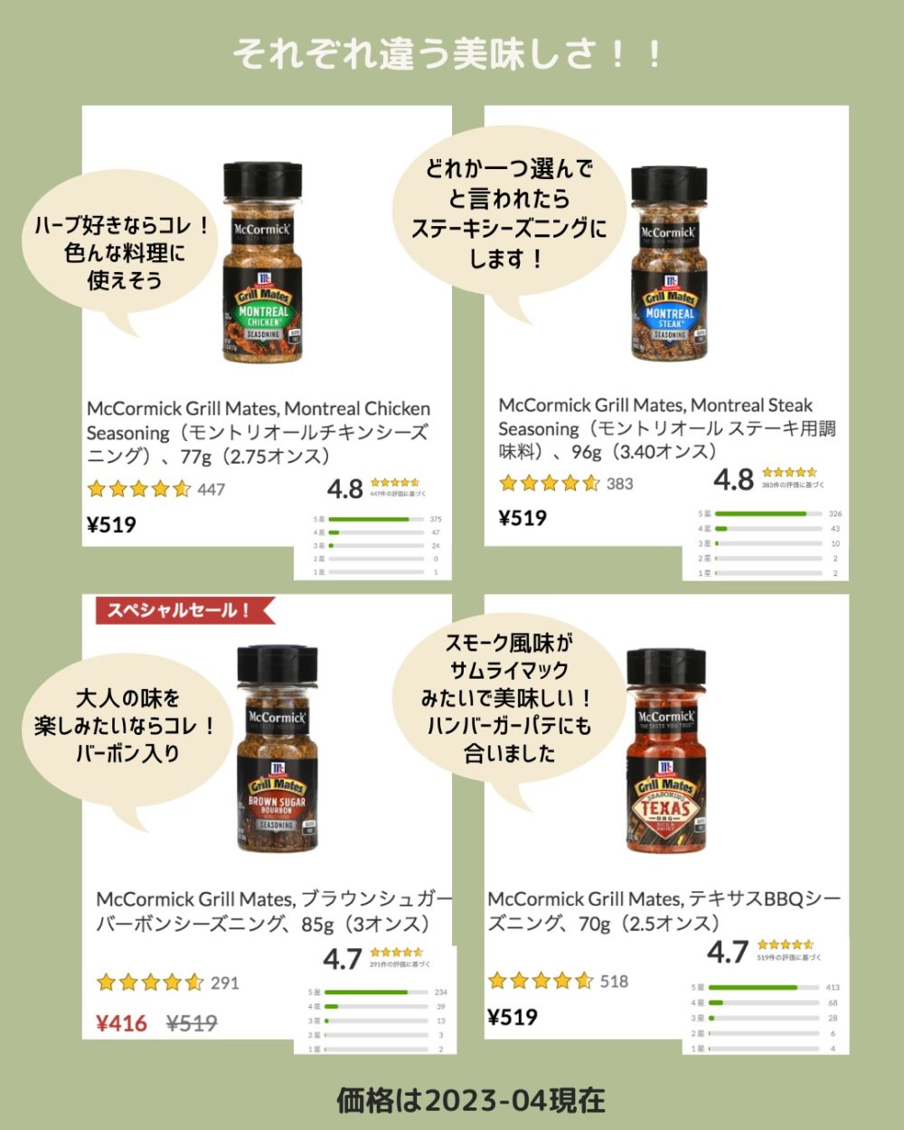 【テキサスシーズニング】のみリピートでそれ以外は味見程度です。