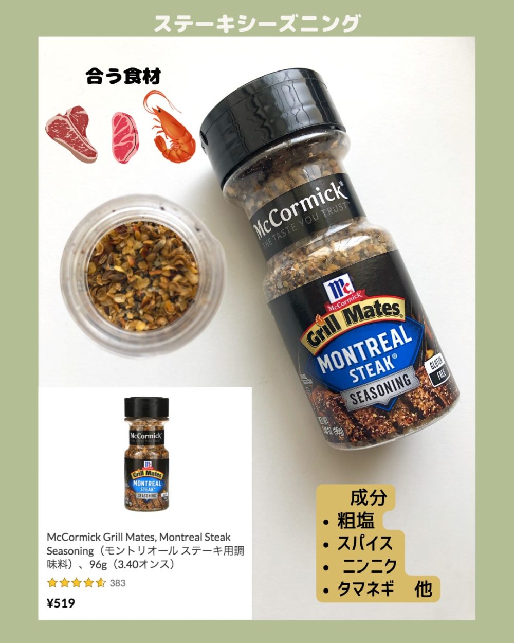 ✅【チキン】も美味しいけどハーブがあれば【ステーキ】などに混ぜて代用できそうな気がする。