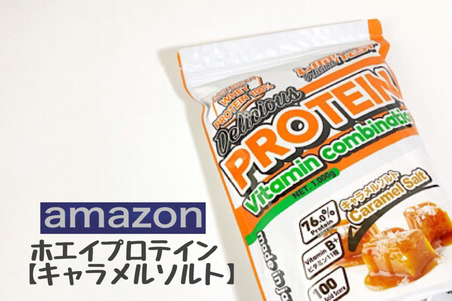 amazonで購入しました! ホエイプロテイン リミテスト Deliciousシリーズ【キャラメルソルト】 工場直販 国産 1kg 2280円 他に4種類の味があります。 アーモンドミルクチョコレート ストロベリー&ココナッツミルク ミルキーパイン レモンヨーグルト